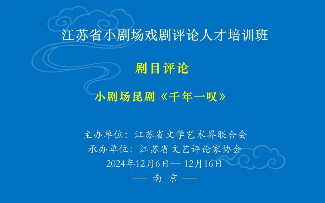 2024年12月12日晚,“江苏省小剧场戏剧评论人才培训班”学员集体观摩了由江苏省苏州昆剧院创演的小剧场昆剧《千年一叹》。