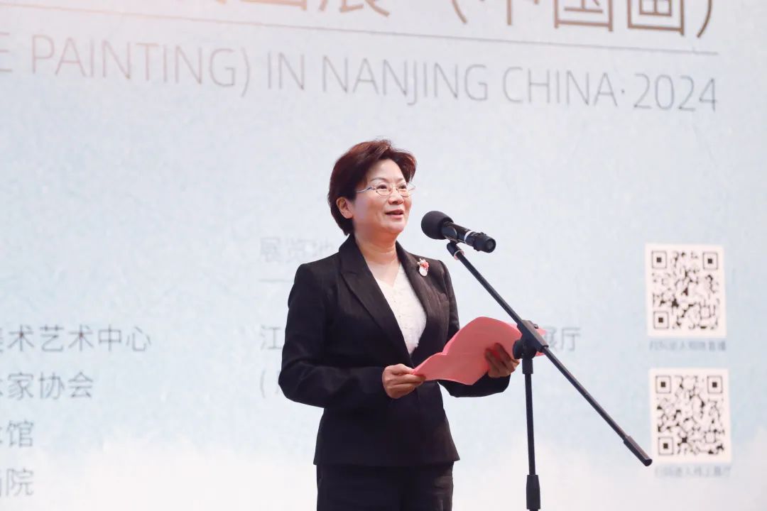 徐宁代表中共江苏省委宣传部向展览的开幕表示热烈祝贺,向长期以来关心支持江苏美术事业发展的社会各界人士表示感谢。她指出,中国百家金陵画展秉持新金陵画派的现实主义创作精神,在20年的深耕与探索中,先后推出了众多技艺精湛的美术精品和思想精深的理论文章,发掘了一批风格流派各有所长的美术人才,有效推进了中国绘画对当代现实社会的描摹、对当代审美经验的表达、对当代艺术语言的探索,为美术事业的发展作出了积极贡献。希望广大艺术工作者以此次展览为契机,深入学习贯彻党的二十届三中全会精神,学习践行习近平文化思想,自觉扛起新的文化使命,以大美之艺绘传世之作,推动传统美学与时代精神相融合,表达时代内涵,引领时代风气,为深入推进文化强省建设、谱写“强富美高”新江苏现代化建设新篇章贡献力量。