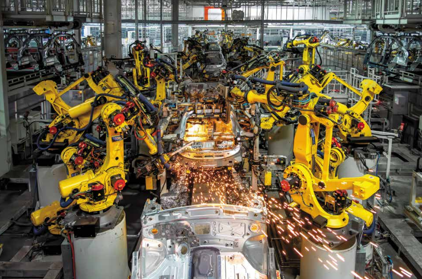 2023年3月摄于长城汽车泰州生产基地,长城欧拉电动汽车车架全自动机器人焊接生产线。