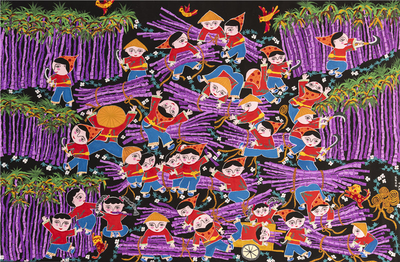 编号:701 作者:叶卢 作品名称:蔗林欢歌 规格:78.7cm×109.2cm