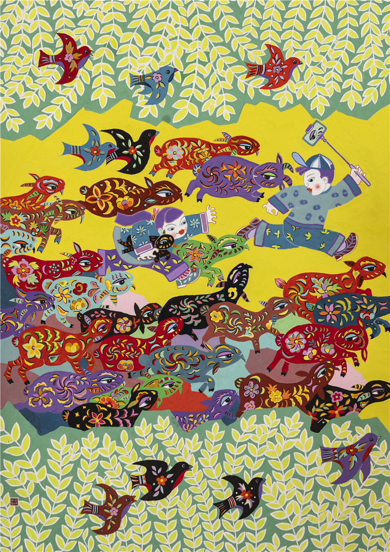 编号:1237 作者:王炀洋 作品名称:姥姥门前唱大戏 规格:80cm×80 cm
