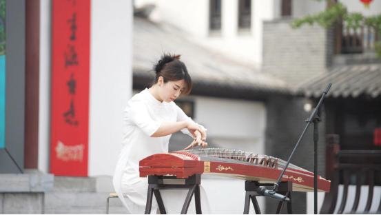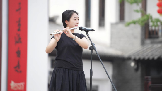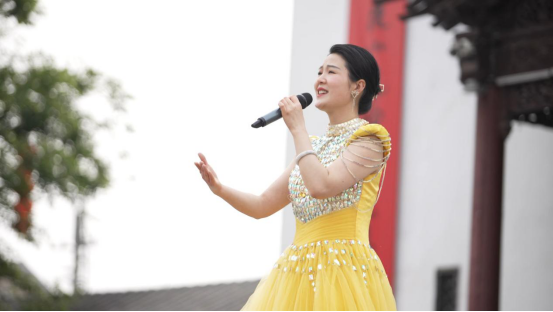 演出在唢呐独奏《乡音美》中拉开帷幕,竹制唢呐吹皱了洪泽湖的碧波,也唤醒了观众心底的乡愁。随后,男声独唱《欢聚一堂》以明快的旋律点燃现场气氛,传递出文艺工作者与人民群众交融互动的喜悦。古筝独奏《青花瓷》则以典雅的曲调勾勒出传统文化的轮廓,二十一弦上的青花纹饰与蒋坝的古镇风情交相辉映,让观众穿越千年,邂逅东方美学的诗意栖居。