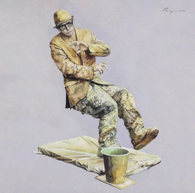 王人及《街头艺人》60×60cm(特邀)