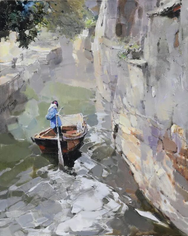 张新权《船泊水门外》70X80cm(评委)