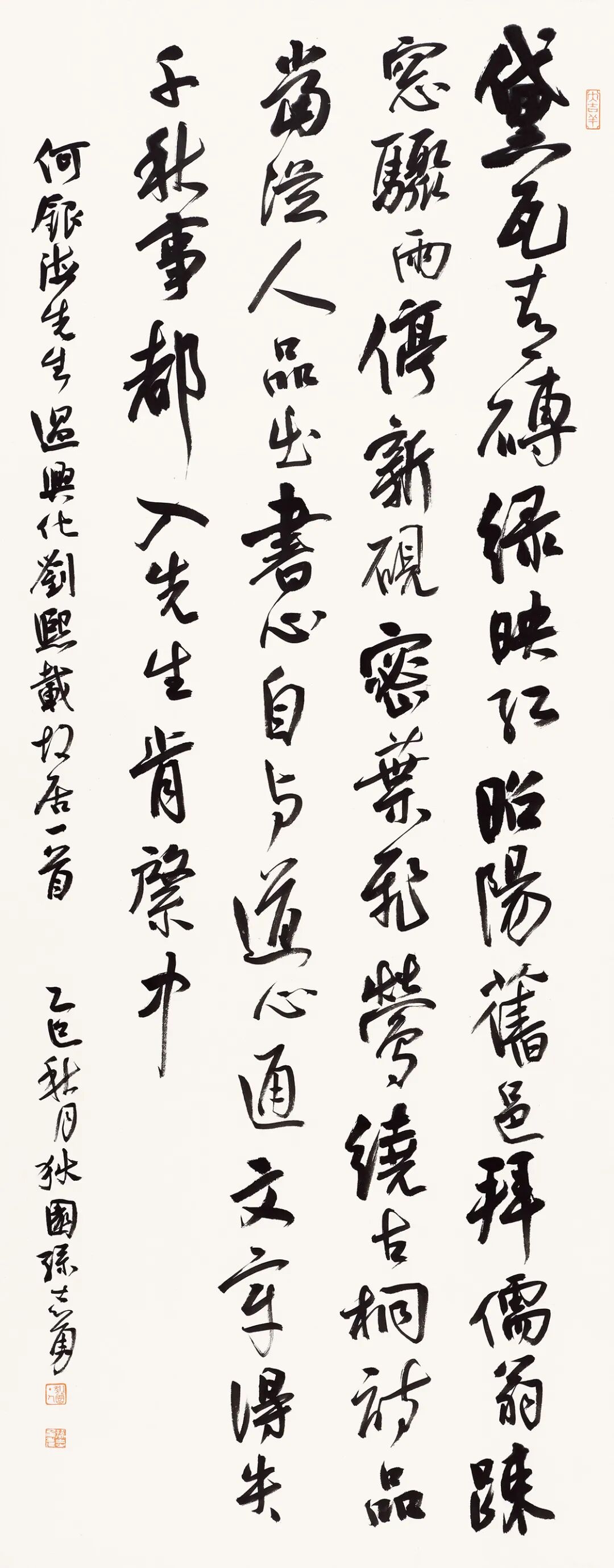 11月4日上午,由中共泰州市委宣传部、泰州市文化广电和旅游局、泰州市文学艺术界联合会主办,泰州美术馆、泰州市诗词协会、泰州市楹联研究会、泰州市书法家协会承办的“墨韵诗联咏泰州-书法作品展”在泰州美术馆四楼展厅开幕。泰州市委宣传部常务副部长、泰州市诗词协会(楹联研究会)会长曹茂良出席并致辞,泰州市文广旅局副局长、二级调研员黄正良,泰州市文联党组成员、驻会副主席刘文杰共同为展览揭幕。泰州美术馆馆长、市书协主席孙志勇主持展览开幕式。