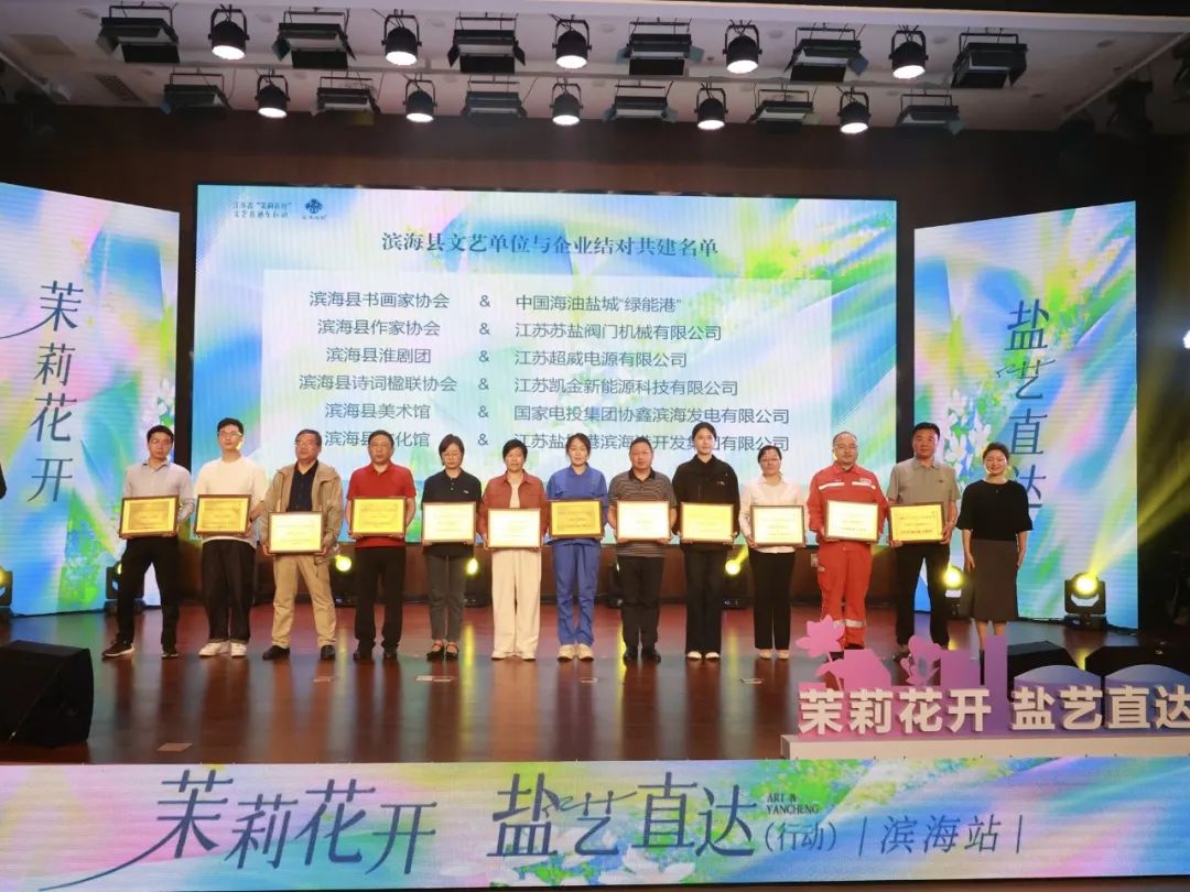 滨海县以“艺企融合”为支点,撬动起文化润企、文艺兴产的时代杠杆。现场举滨海县文艺组织与企业助力仪式,将高质量文化服务直接输送至五家企业。