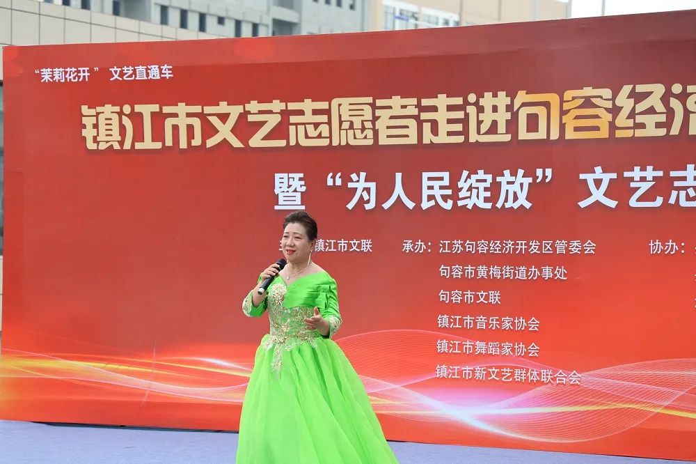 5月22日下午,“茉莉花开”文艺直通车·镇江市文艺志愿者走进句容经济开发区(黄梅街道)暨“为人民绽放”文艺志愿服务活动精彩上演。镇江市文联党组成员、副主席孙彤,镇江市文联党组成员、秘书长洪琦,中共句容市委宣传部常务副部长杨健,句容市文联主席吴清、副主席徐燕,黄梅街道党工委宣统委员徐跃跃,以及镇江市舞协、镇江市新文艺群体联合会、江苏科技大学、江苏农林职业技术学院、江苏中科瑞博科技有限公司等单位负责人出席本次活动。