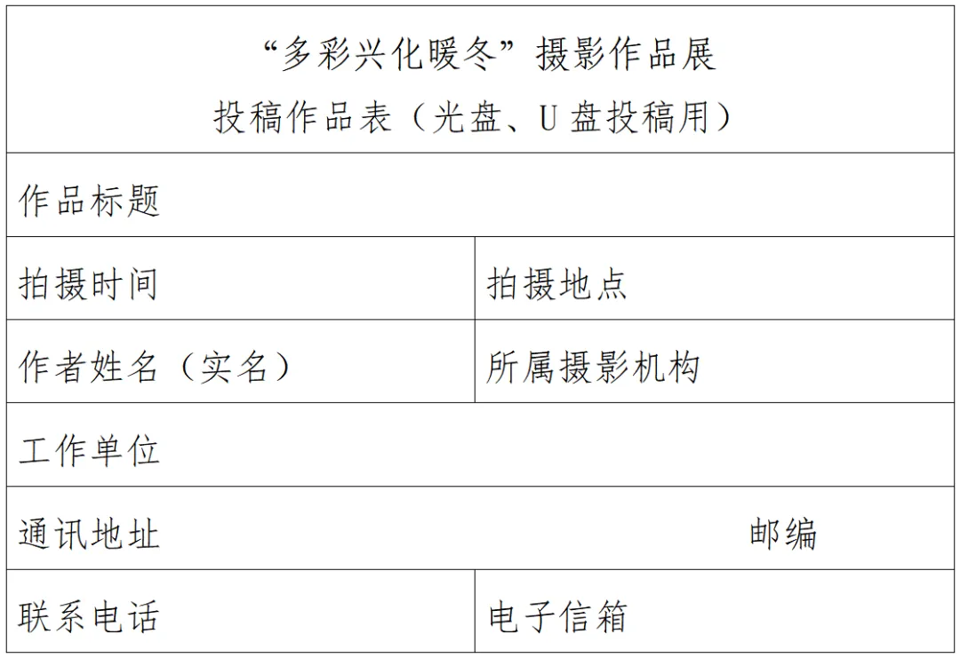 1.网络投稿:投稿者须在诠摄汇网“参展”专区(dz.cppfoto.com)兴化摄影作品展中注册,并按要求填写真实个人信息。主办单位保证不公开或泄露投稿个人非公开信息。投稿作品为JPG格式,图片统一处理为长边1000-1500像素,文件大小控制在500KB-1MB以内。
