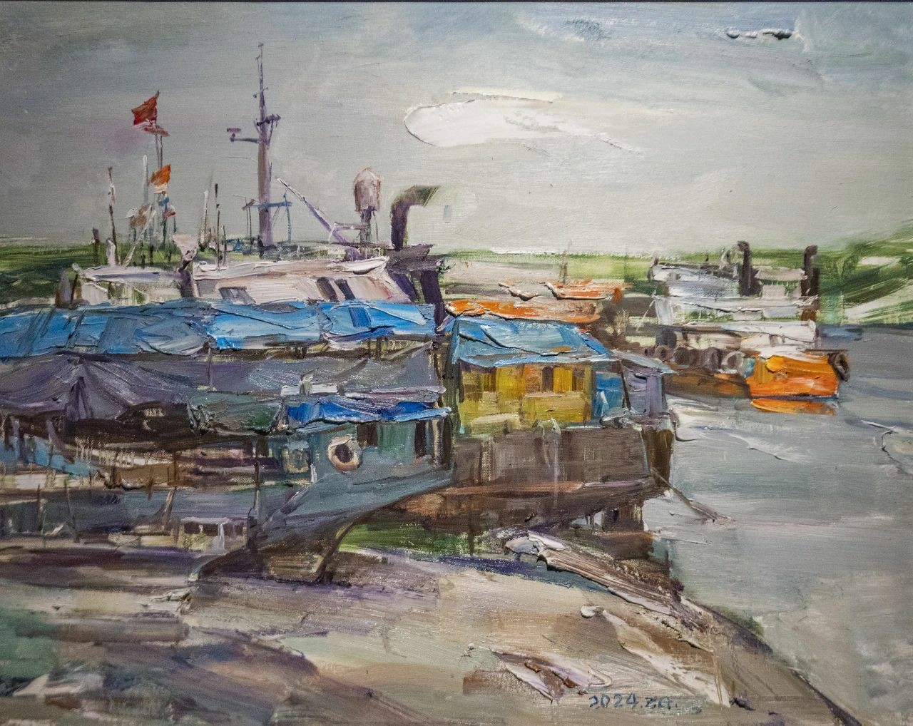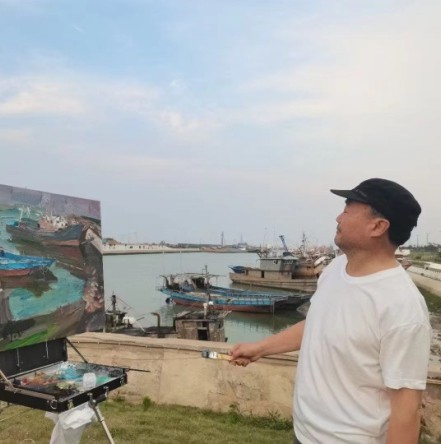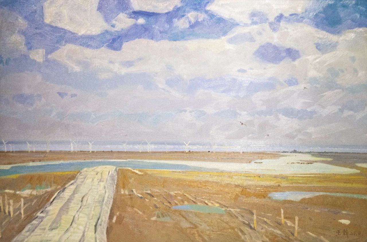 采风创作期间,来自全国各地的19位油画名家深入滨海港、射阳海滨、亭湖区潮间带艺术村、江苏盐城湿地珍禽国家级自然保护区、大丰区野鹿荡、东台条子泥、盐城珠溪古镇、新四军纪念馆等地进行参观和写生,感受“东方湿地、黄海明珠”的独特魅力,用画笔捕捉盐城的自然美景与人文风情。