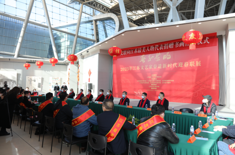 1月11日下午,“春和景明”——2023年江苏省文艺家奋进新时代迎春联展在省现代美术馆开幕,同时还举办了向2022年江苏最美人物捐赠书画作品仪式。