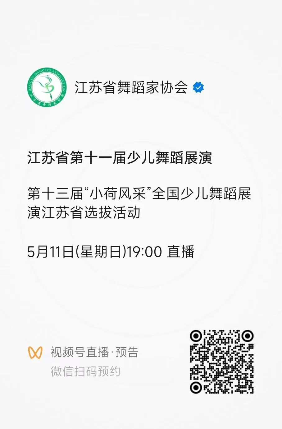 由江苏省文学艺术界联合会、江苏省舞蹈家协会主办的江苏省第十一届少儿舞蹈展演暨第十三届“小荷风采”全国少儿舞蹈展演江苏省选拔活动将于5月9日-11日每睌19:00在南京市工人文化宫工人剧场举办。