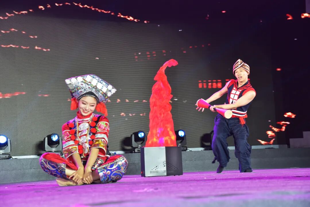 接下来的《夜话瑶山一双人》,中南大学青年舞蹈家牛怡钒、朱子鹏如云雾般轻盈的舞姿,迅速将观众带入静谧浪漫的瑶山夜色。