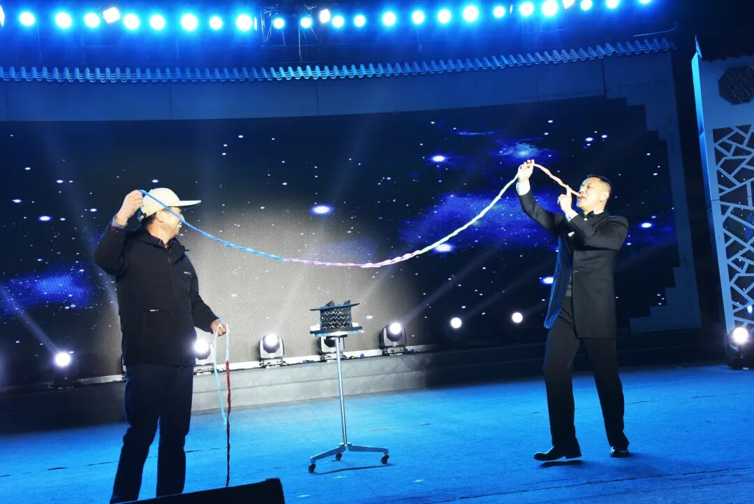中国杂技金菊奖获得者吴松涛与助演沈艳红带来的魔术《魔幻手彩》,带领观众现场“见证奇迹”。