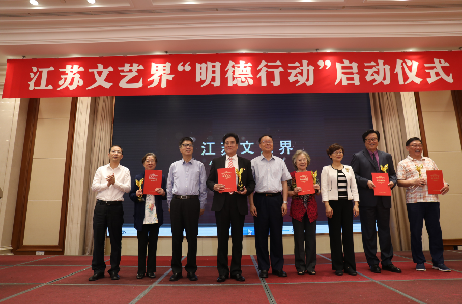 ▲2019年9月,省文联举行江苏文艺界“明德行动”启动仪式,推举张继青、陈德林、黄素嘉、雷建功、吕少明五位老艺术家为江苏文艺界“明德模范”。