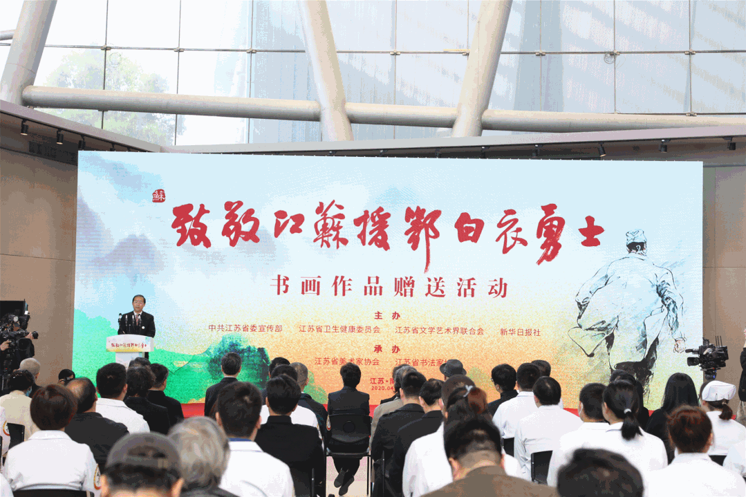 ▲举办“致敬江苏援鄂白衣勇士”书画赠送活动,向我省2820位赴湖北医务人员每人赠送一件书画作品