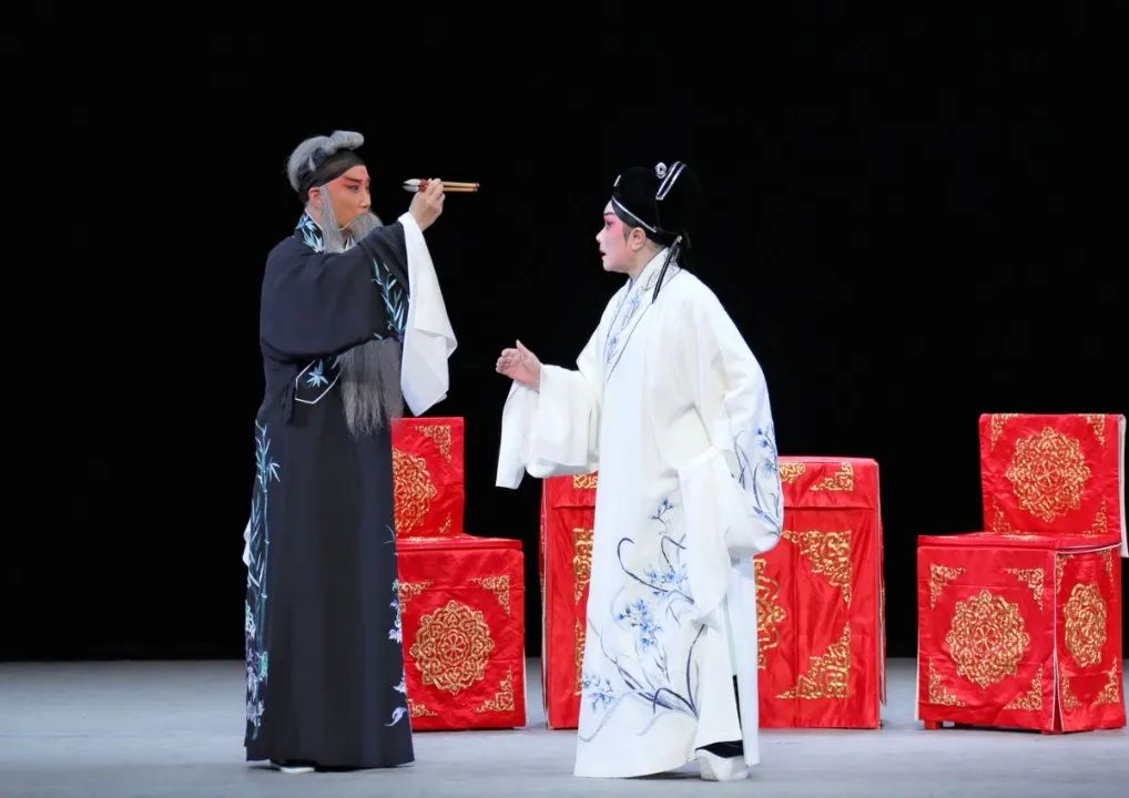 或许对于戏曲演员来说,先生与弟子有着更深的羁绊。因为羁绊,所以成就艺术。弟子施夏明和周鑫将拜伏于地的石小梅搀起。戏里戏外,先生学生。