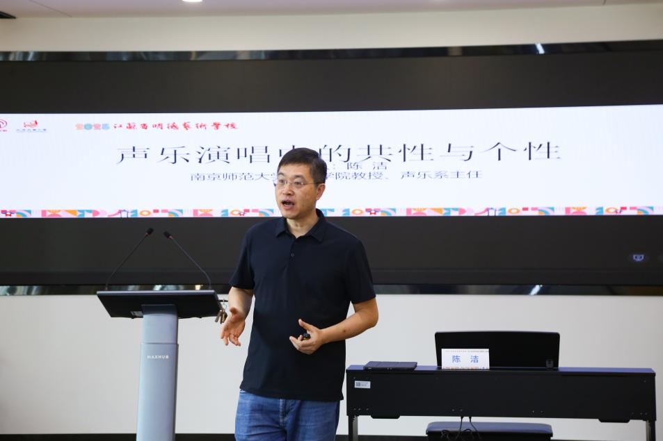 7月25日下午,由江苏省文学艺术界联合会、江苏开放大学联合创办的“江苏省明德艺术学校”系列培训第四场活动精彩启幕。此次培训特别邀请到南京师范大学音乐学院教授、声乐系主任陈洁老师,带来《声乐演唱中的共性与个性》的专题讲座,为首批50名文艺从业者与声乐爱好者,搭建起一座连接专业理论与实践表达的桥梁。讲座由我院教师陶蕾伃主持。