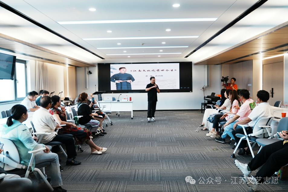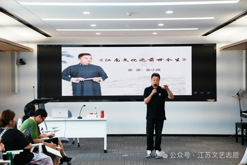 7月26日下午,由江苏省文学艺术界联合会、江苏开放大学联合创办的“江苏省明德艺术学校”系列培训第六场活动精彩启幕。此次培训特别邀请到中国曲艺“牡丹奖”得主、一级演员袁小良老师,带来题为《江南文化之前世今生》的专题讲座,为首批50名基层文艺工作者与爱好者,铺开一幅评弹艺术与江南水土交织共生的文化长卷。
