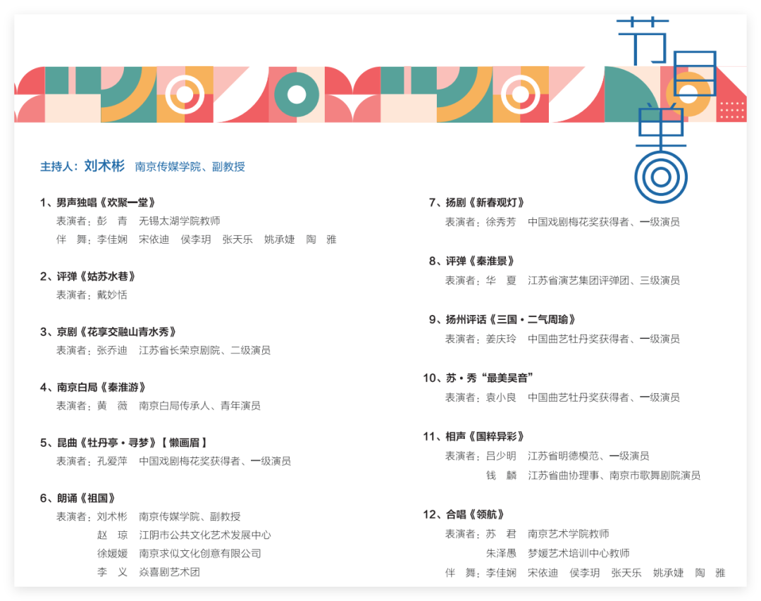 演出在一曲欢快热烈的《欢聚一堂》中拉开帷幕。学员代表、无锡太湖学院教师彭青的男声独唱高亢激昂,瞬间点燃了全场气氛。随后,评弹《姑苏水巷》、京剧《花享交融山青水秀》、南京白局《秦淮游》等节目轮番上演,戴妙恬、张乔迪、黄薇等学员以精湛的技艺和独特的艺术魅力,展现了江苏传统艺术的深厚底蕴和独特风采。昆曲《牡丹亭・寻梦》由中国戏剧“梅花奖”获得者、一级演员孔爱萍倾情演绎。她的表演细腻婉转、声情并茂,将杜丽娘的情思缱绻展现得淋漓尽致,赢得了观众的阵阵喝彩。朗诵《祖国》由主持人刘术彬和学员赵琼、徐媛媛、李义共同完成。他们用深情的语调倾诉着对祖国的深沉热爱和美好祝福,让现场观众深受感染。扬剧《新春观灯》、评弹《秦淮景》、扬州评话《三国・二气周瑜》、苏・秀“最美吴音”、相声《国粹异彩》等节目更是精彩纷呈。徐秀芳、姜庆玲、袁小良、吕少明等参与首期培训授课的艺术名家与华夏等学员们同台献艺,他们的表演或诙谐幽默,或韵味悠长,或气势磅礴,为观众带来了一场精彩绝伦的艺术盛宴。最后,演出在合唱《领航》中落下帷幕,苏君、朱泽愚等表演者的歌声嘹亮动人,李佳娴等舞者的伴舞整齐划一,表达了对艺术事业的执着追求和对美好未来的无限憧憬。