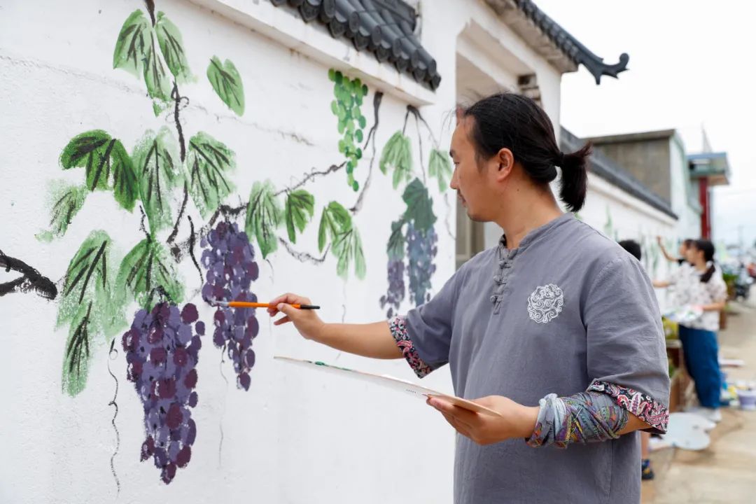 农民画讲究“见人见物见生活”。在这里走一圈,连线条都有了生活的温度。可以画港口边补网的老人,他手指捏着渔网的弧度,和身后渔船的木线条一样有韧劲;可以画孩子们追着浪花跑,他们的脚印在沙滩上歪歪扭扭,像画里不用规尺的曲线;还可以画山脚下的菜园,篱笆是歪歪的木杆,各种素菜挤在一起,比任何设计过的构图都生动。这山、这海、这村里的人,不是冷冰冰的风景,是能让人想起“日子”的素材—就像农民画里总有的烟火气,在这里,是带着咸湿气息的海风,是草木覆被的山间,是画出来就能让人闻到、摸到的鲜活。