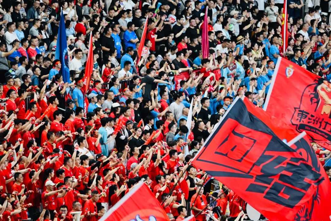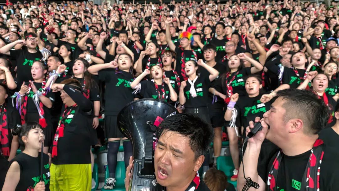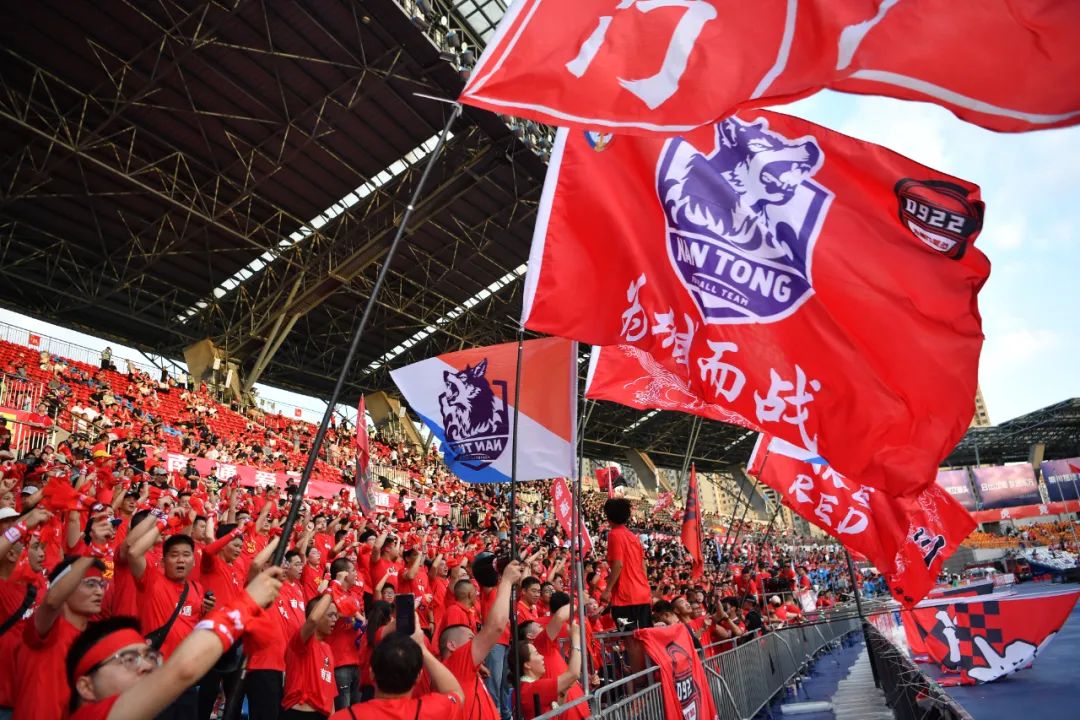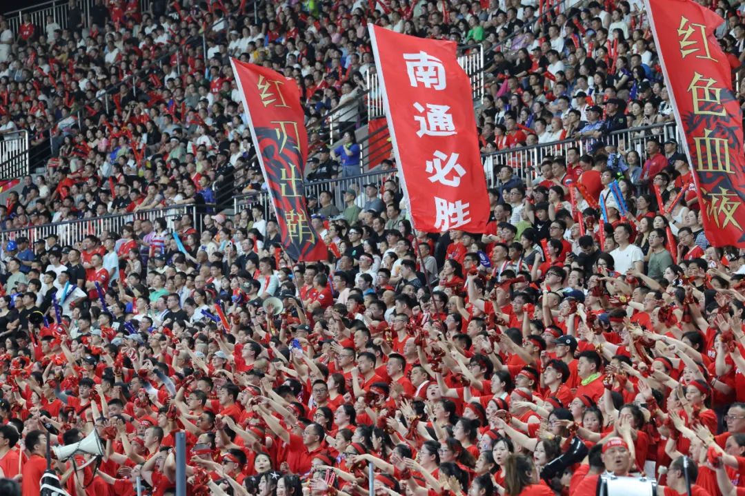 热情似火的南通球迷为主队呐喊加油。 吴俊 摄