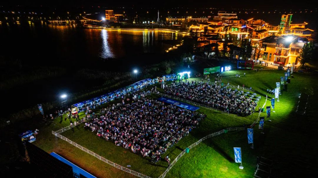 7月19日晚,“苏超”第七轮盐城队VS南通队,盐城东台市西溪景区第二现场,千余市民边吃美食边看“苏超”比赛实况转播。梅国强 摄