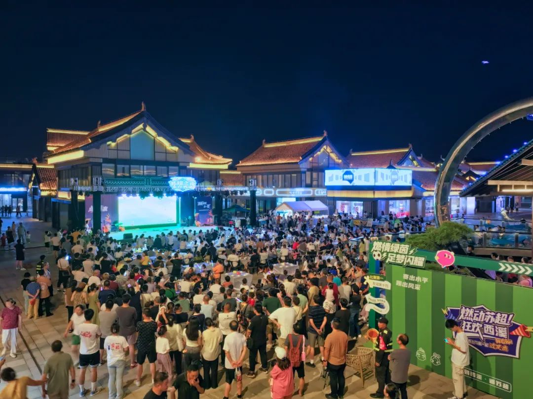 7月19日,“苏超”第七轮比赛,南通队主场迎战盐城队。球迷及游客近万人在南通市通州区洲际梦幻岛大屏观看比赛。瞿德均 摄