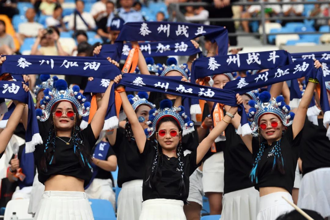 7月19日晚,“苏超”第七轮泰州队主场迎战宿迁队,泰州市体育公园体育场现场共有26868人进场观赛。万程鹏 摄