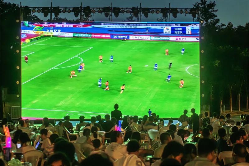 7月20日,苏州工业园区,市民在金鸡湖畔观看“苏超”,感受赛场火热激情,乐享夏夜足球盛宴。张锋 摄