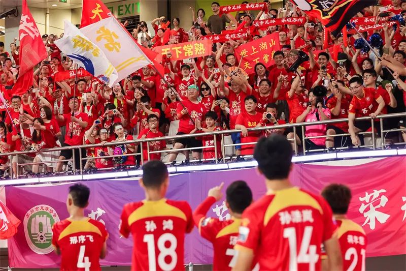 7月20日晚,苏州队主场4比0大胜镇江队,赛后苏州队队员和球迷互动致谢。蒋文超 摄