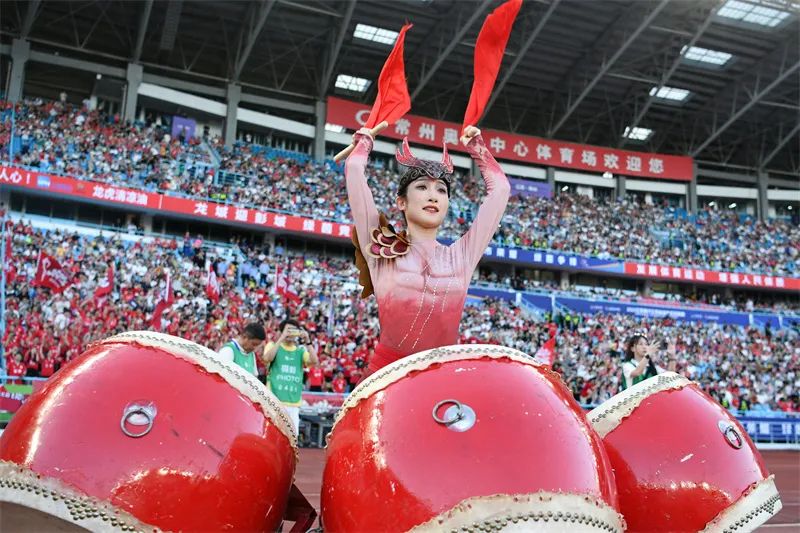 7月20日,在“苏超”赛场无锡队对阵淮安队的比赛前的暖场表演。郎从柳 摄