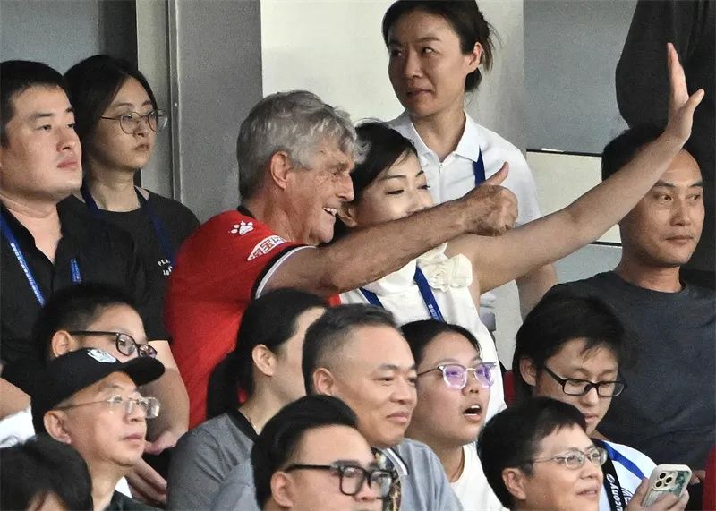 前中国男足国家队主帅米卢现身常州赛场观赛。万程鹏 摄