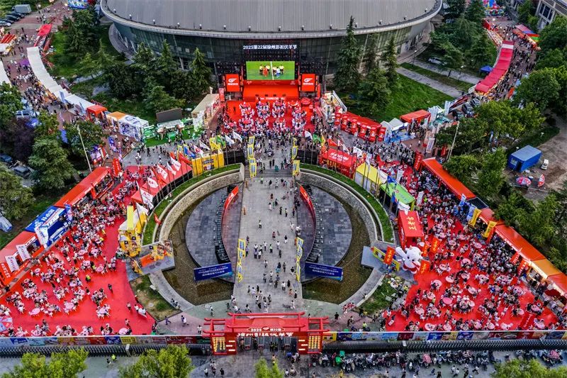 7月20日,入伏当日,第22届彭祖伏羊节在徐州体育中心拉开帷幕,徐州球迷吃伏羊美食、观球赛,岂不快哉!刘照富 摄