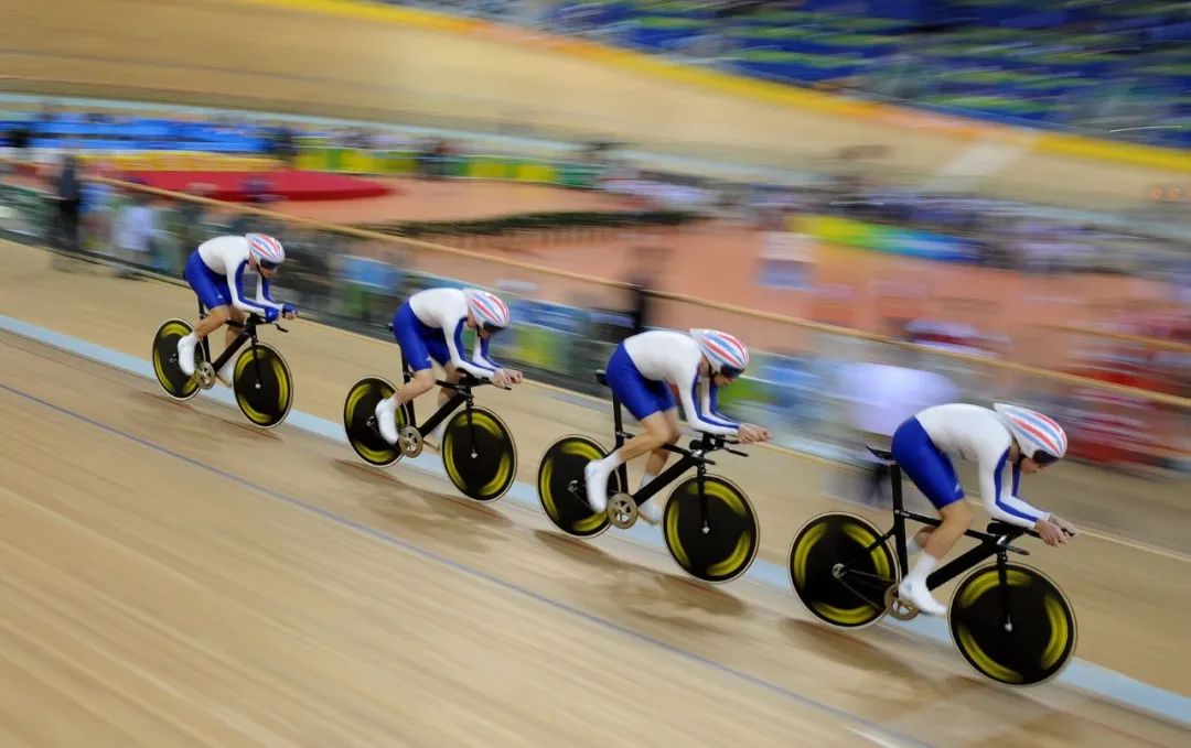 英国队队员在2008年北京奥运会自行车团体竞速赛中的英姿。刘占崑 摄
