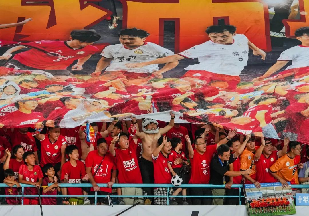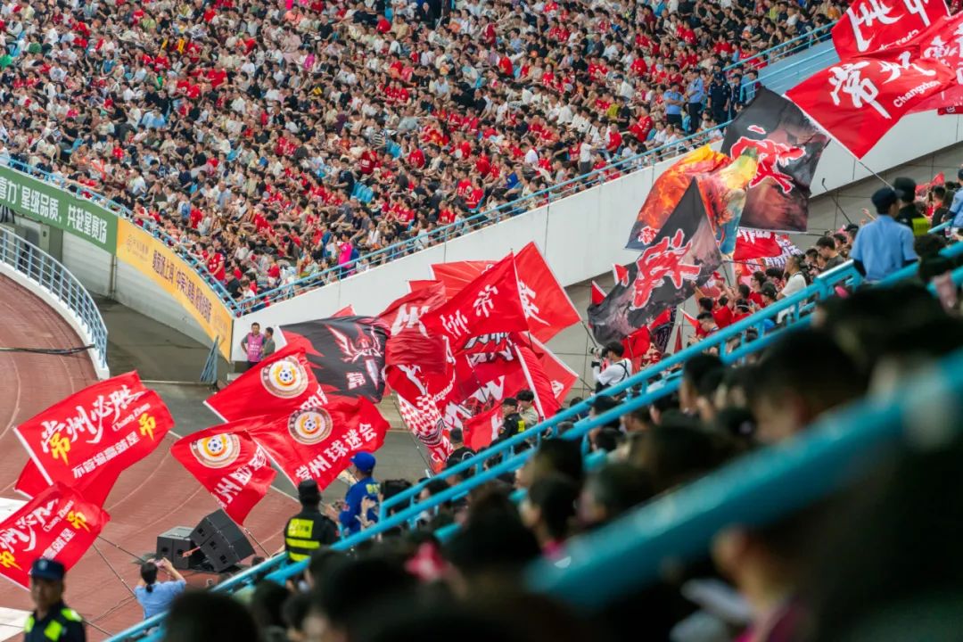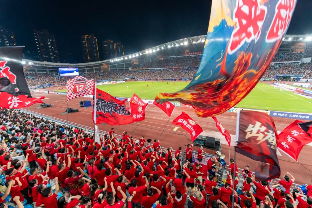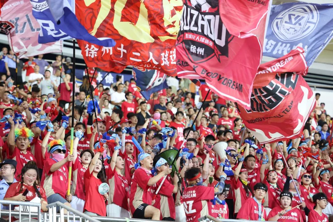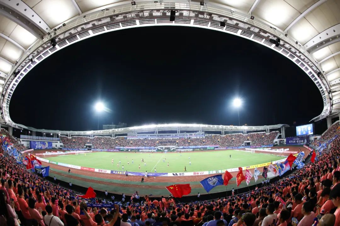 8月16日晚,“苏超”迎来第九轮精彩对决,经过激烈比拼,苏州队主场1:1踢平泰州队。现场,苏州市体育中心体育场内人声鼎沸,比赛共吸引了32356人到场观看。吴俊 摄