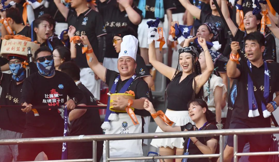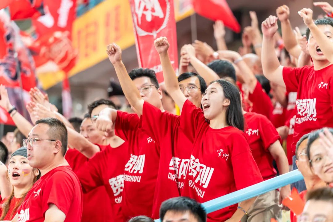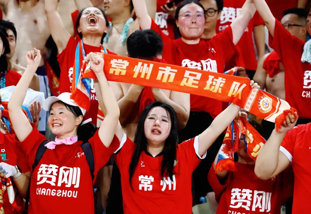 8月16日,常州队和镇江队比赛前球迷互动,为常州队加油助威。邵华美 摄