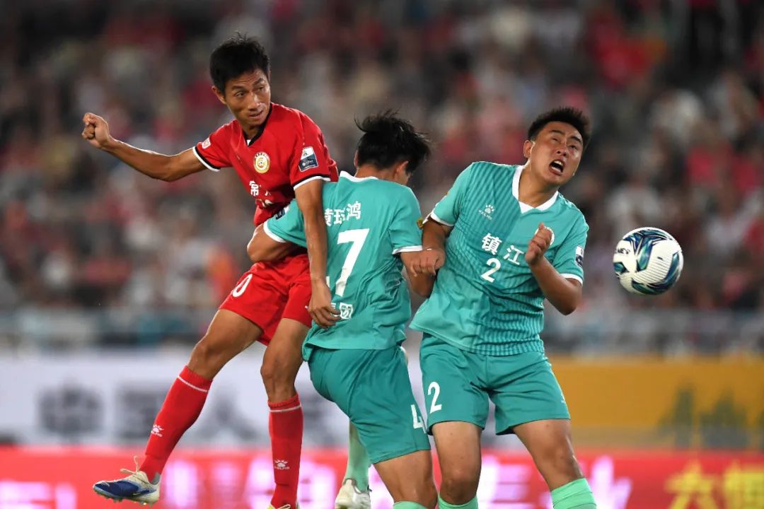 “苏超”第九轮苏州队VS泰州队,双方1:1握手言和。管钰楠 摄