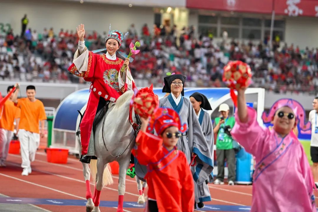 8月16日,苏州体育中心体育场,“苏超”第九轮苏州队主场对阵泰州队,开赛前上演《状元回乡看球赛》的表演。张从余 摄