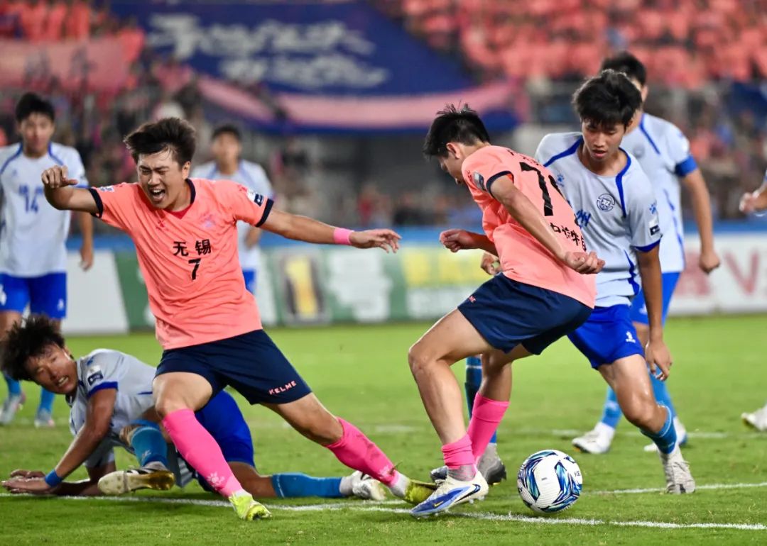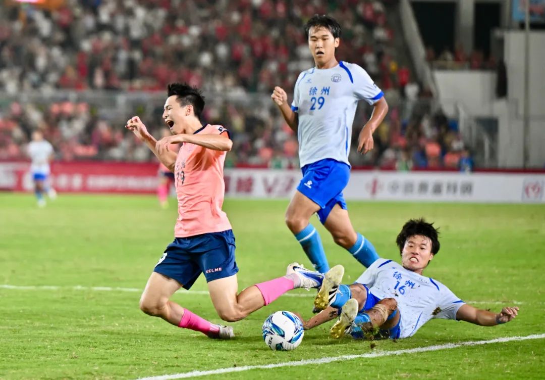 8月16日,宜兴体育中心,“苏超”第九轮无锡队坐镇主场迎战徐州队。经过激烈比拼,无锡队3:3战平徐州队。蒋文超 摄