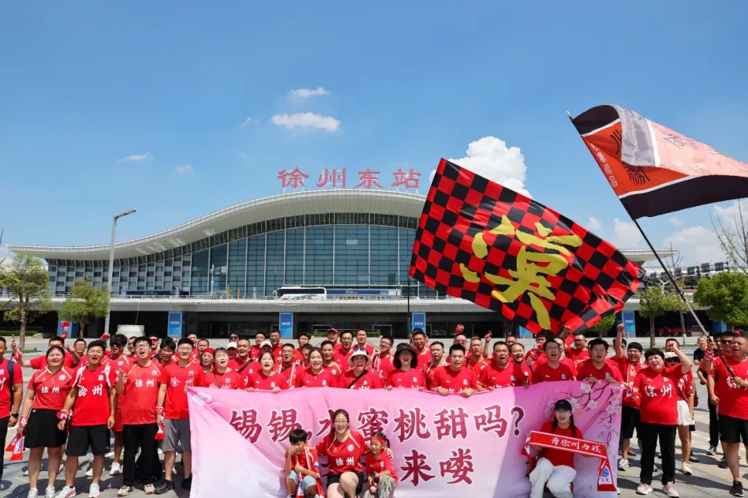 8月16日,徐州球迷乘坐高铁奔赴无锡,为家乡队助威。高刚 摄