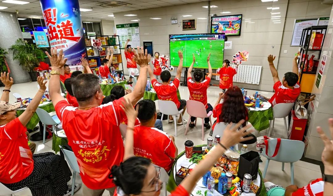 8月16日,“苏超”第九轮无锡队对阵徐州队,徐州市鼓楼区永康社区组织群众观看直播,为双方球队鼓劲。刘立明 摄