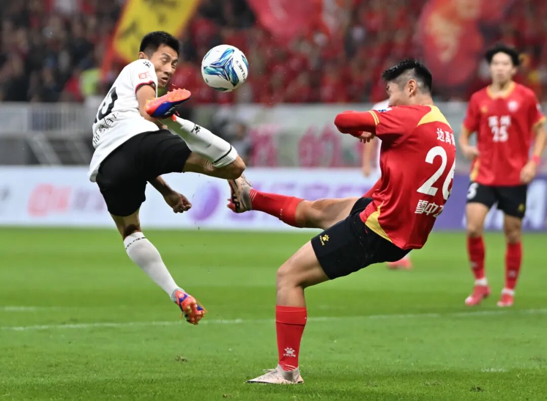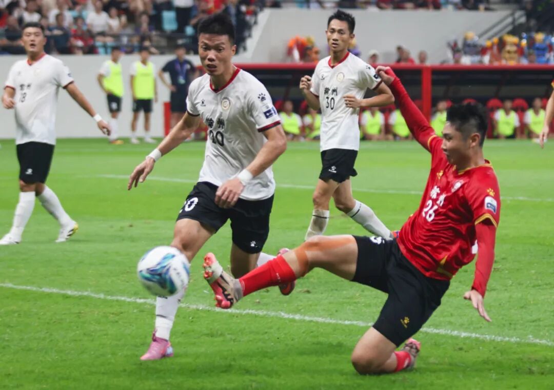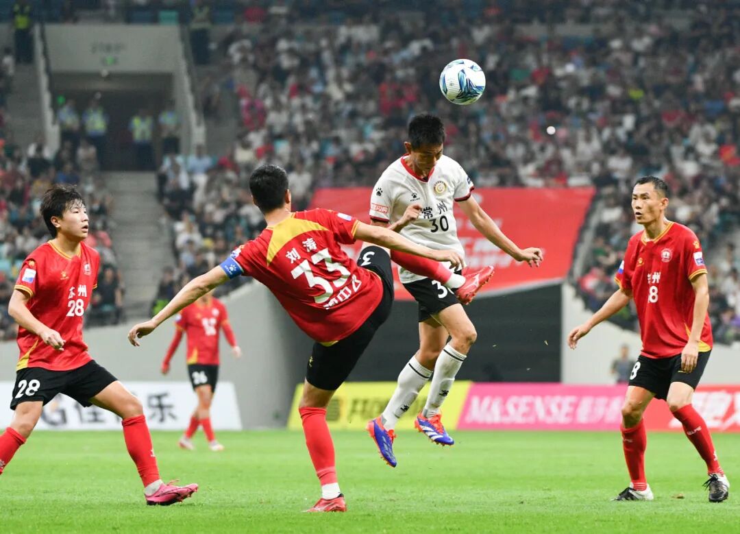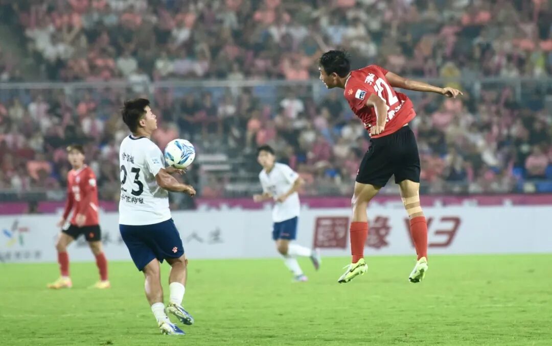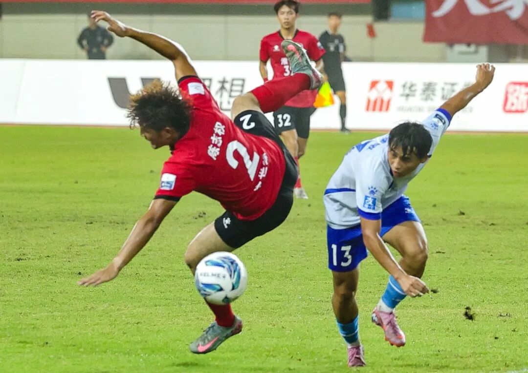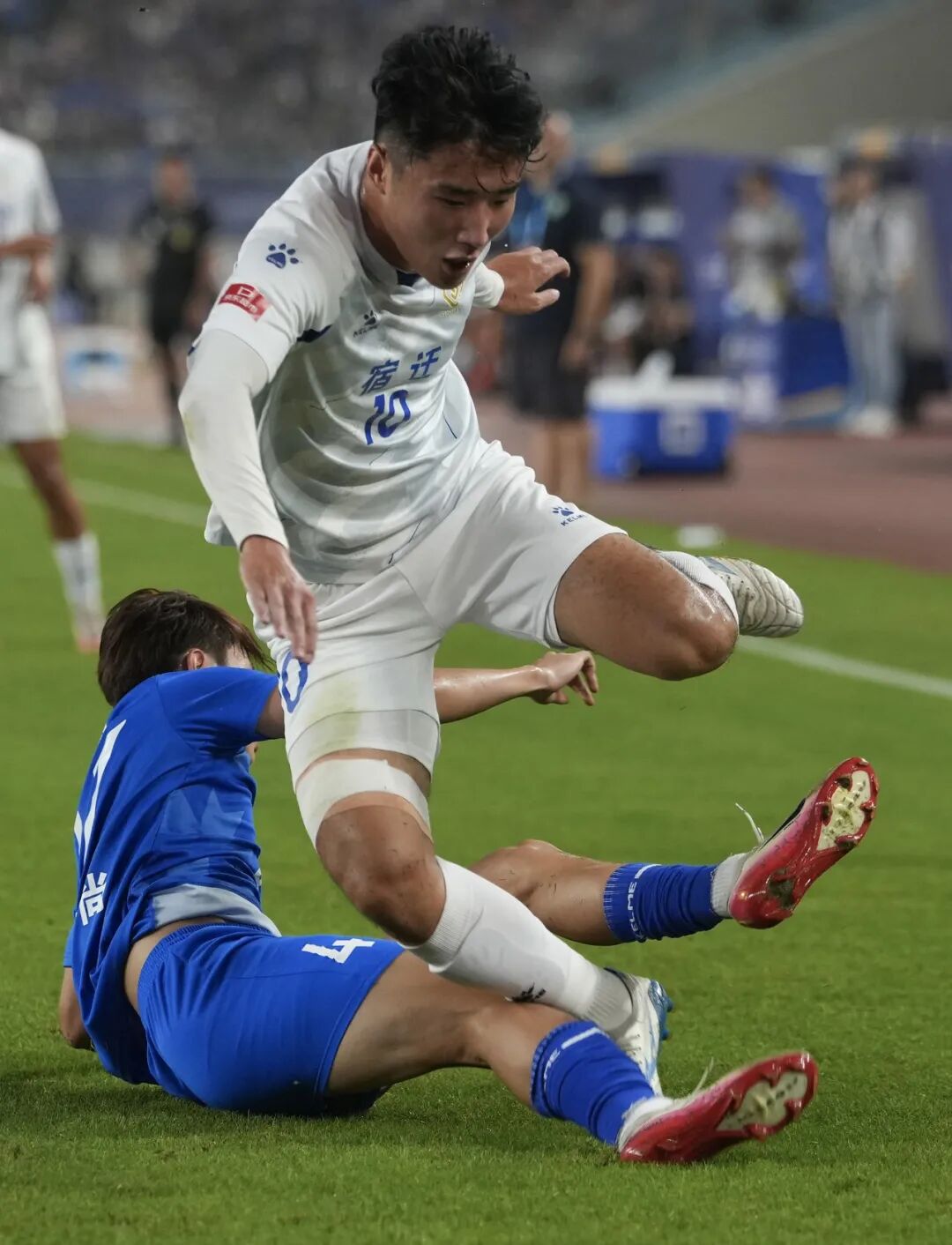 伤停补时阶段,苏州队26号球员边禹豪攻入一球,绝杀对手,最终苏州队3:2胜常州队。袁新宇 摄