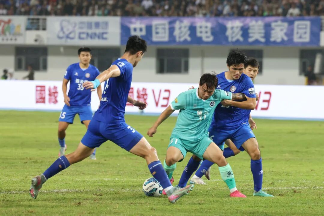 9月27日晚,“苏超”第13轮的焦点对决,淮安队坐镇主场迎战徐州队,经过激烈比拼,淮安队以0:0战平徐州队,拿到宝贵的1分,成功晋级八强。郑思宇 摄