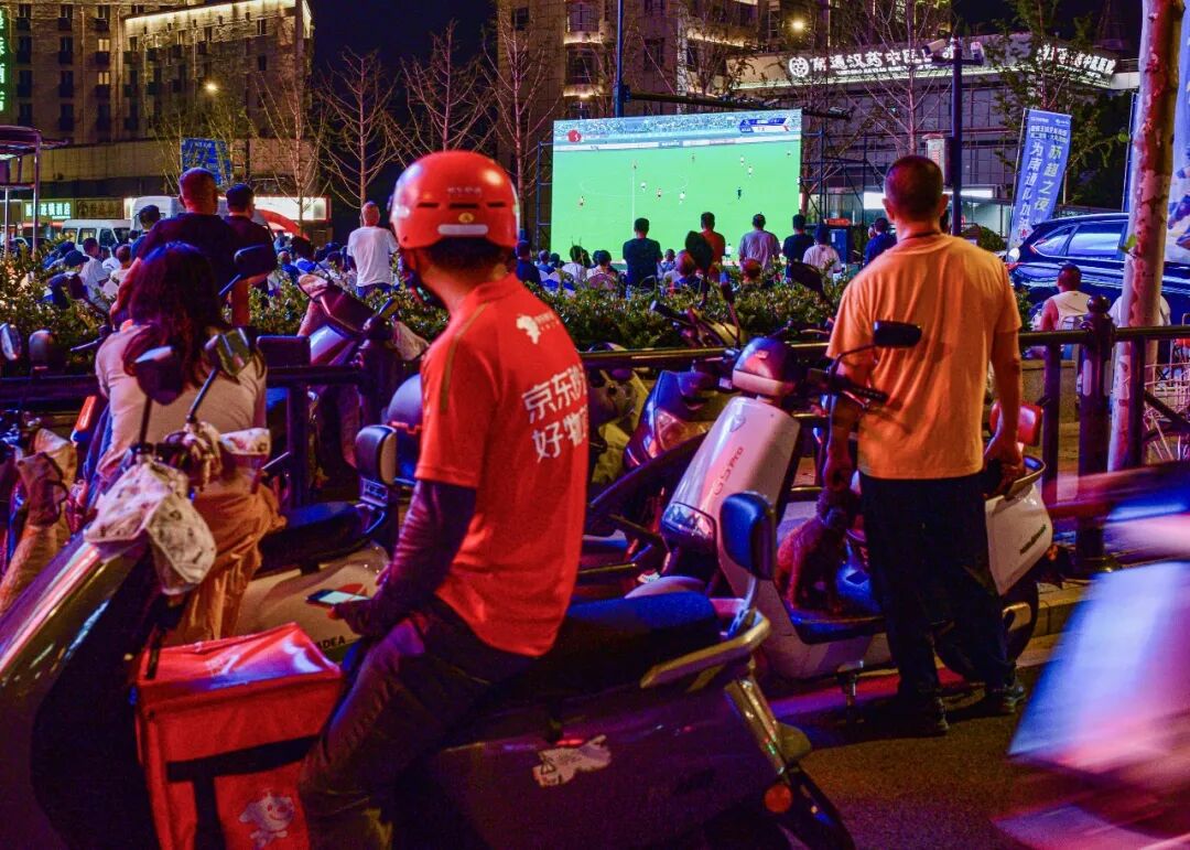 精彩的比赛让快递小哥也停步观看。陈德军 摄