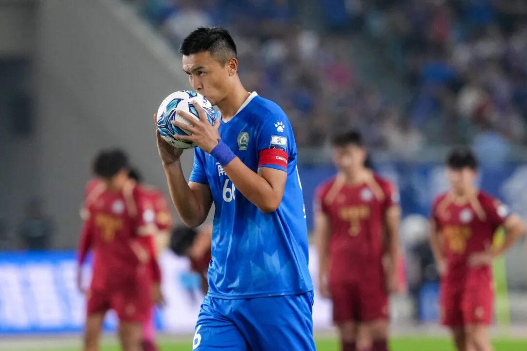南京队球员戈伟亲吻足球,准备踢点球。李博 摄