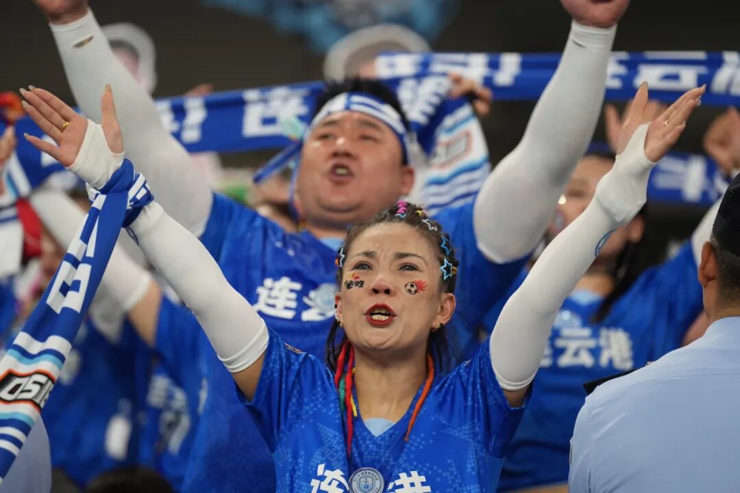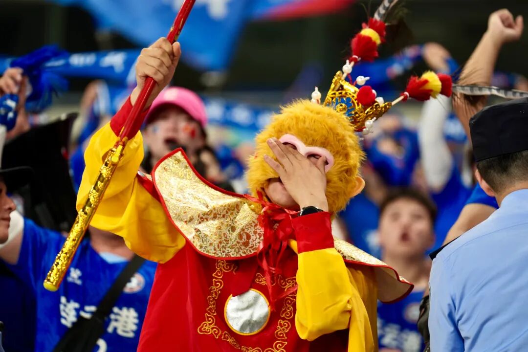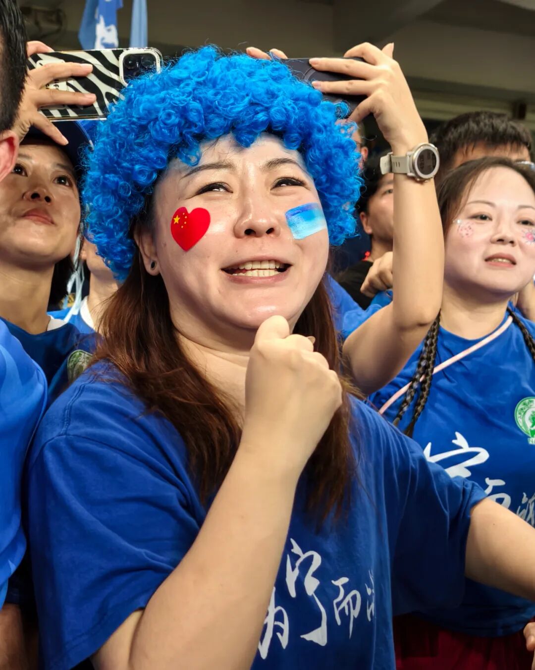 南京队取得点球大战胜利,南京队球迷欣喜若狂。泱波 摄