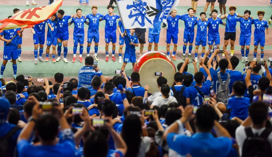 南京队获胜后向现场球迷致谢。肖勇 摄