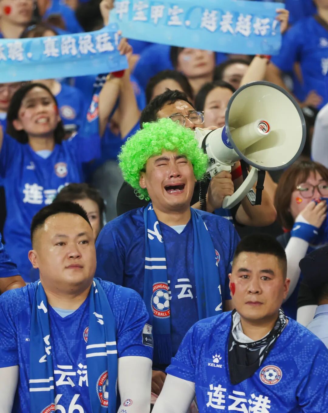 10月4日,“苏超”淘汰赛点球大战,南京队5比3战胜连云港队,连云港队球迷为球队惜败流下热泪。吴雪 摄