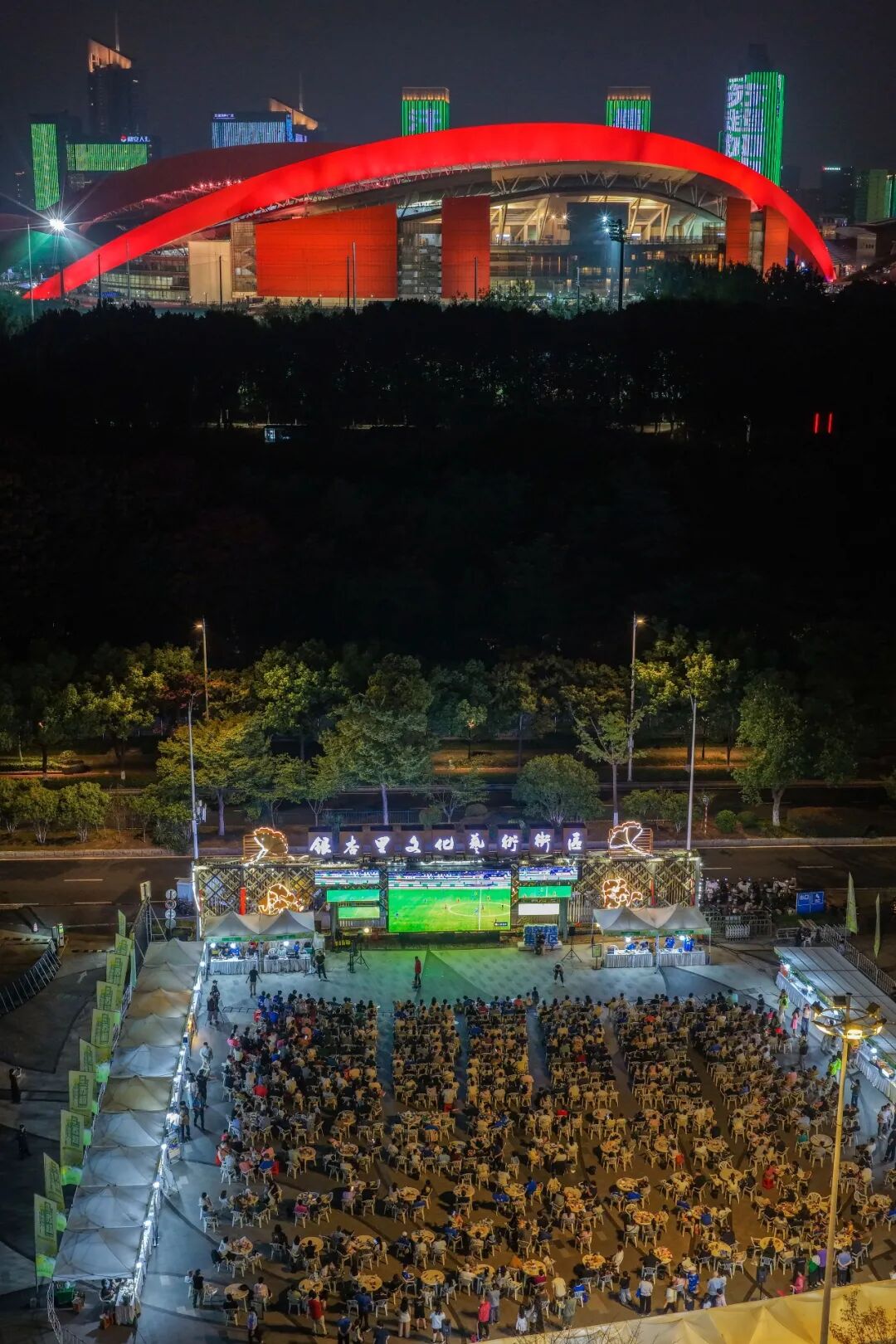 10月4日,球迷在南京市建邺区银杏里文化艺术街区的苏超“第二现场”观赛。李博 摄