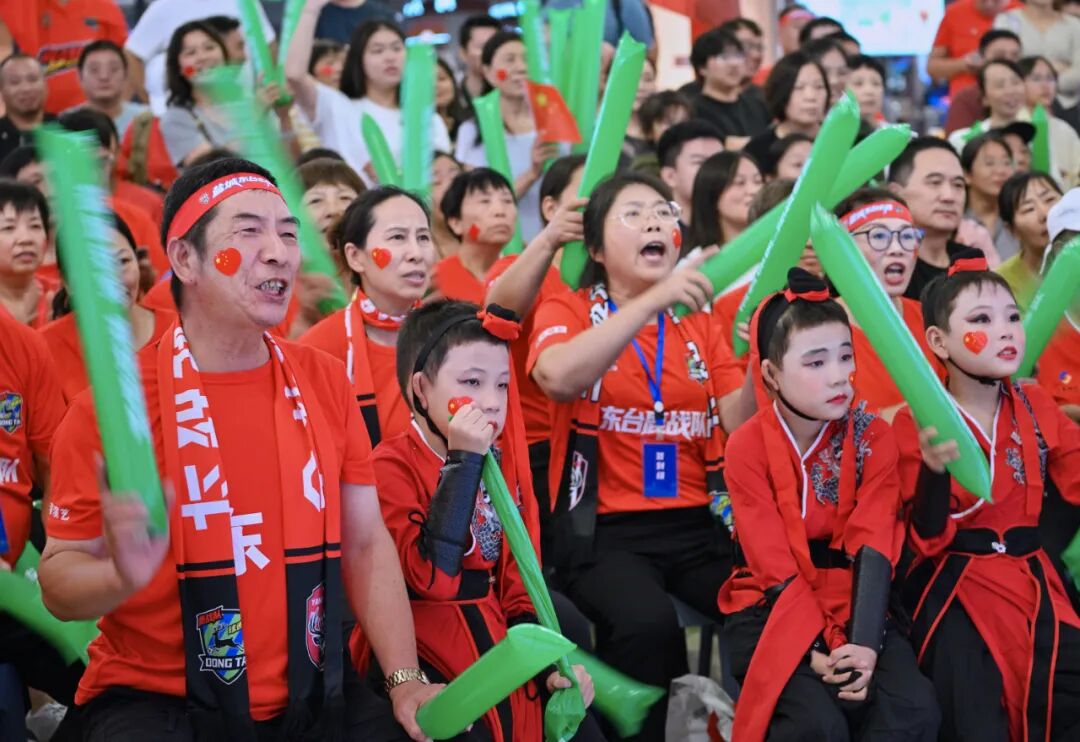 盐城悦达889商场内第二现场,球迷们为队员欢呼助力。崔桂林 摄